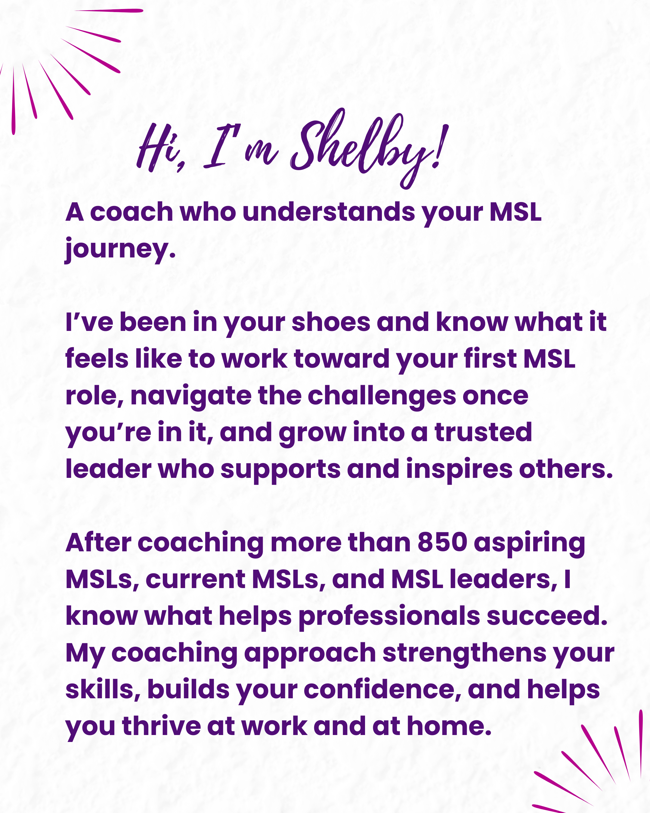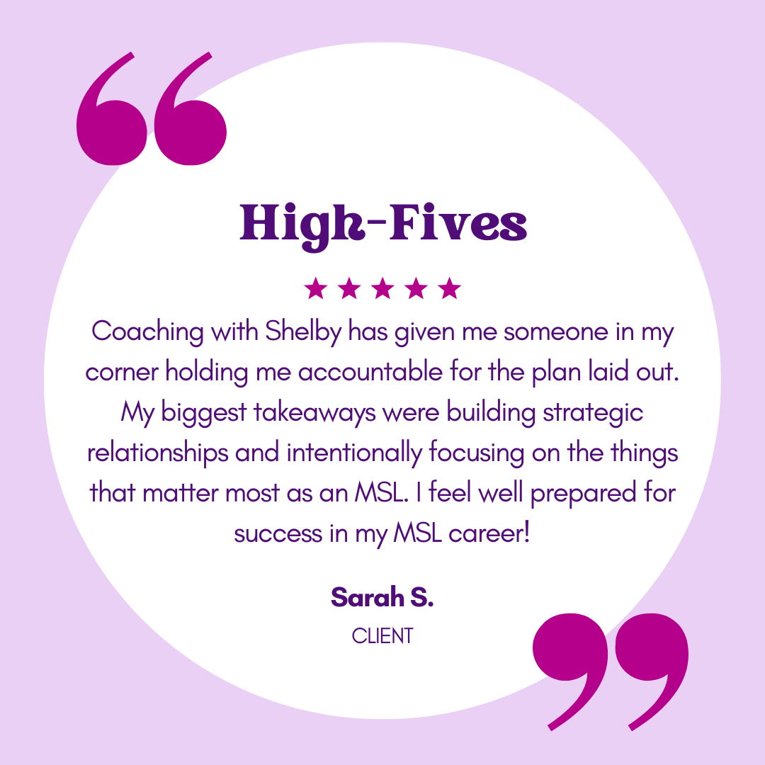 “Shelby Oksman is an exceptional leader and mentor to all within the industry. She has a passion for every MSL to succeed regardless of their level of expertise. She can identify strengths and guide through areas of growth. I was lucky to have had Shelby mentor me and would not be where I am today without her professional coaching, support, and friendship! I am confident that Shelby will positively impact you and/or your team with her deep understanding of industry and her passion for helping others succeed!”